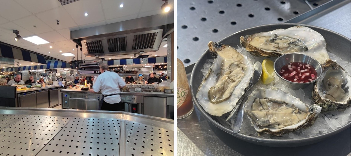 I was glad this place is open again! Heard many good opinions and finally had a chance to check it out while in Doncaster!!! Located at the market, food is sourced daily from the sea food suppliers. My favourite is always calamari and I had to try it as a starter!!! The best calamari I ever had. They did not disappoint, it was delicious, cooked to perfections with enough crumbs but not over done it. The dish was fantastic, each piece was juicy and you could taste the meat! Very recommend. The main I had a scallops which was devine! Very fresh pieces, the same cooked to perfection! Serving plates looked beautiful and you would not expect it to see at the market. I could see people stopping just to have some oysters which are open in front of you! The place can turn very busy but you can sit and watch the magic cooking happening in front of you while you wait for your food. Definitely I will be returning for more experience.
